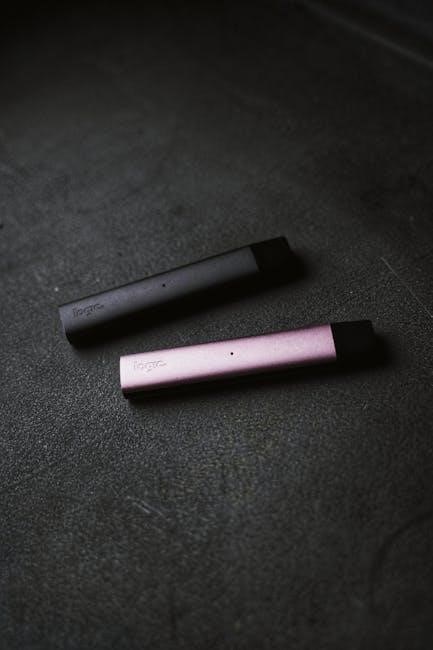 Before disposal‚ ensure the device is completely discharged. Remove any remaining e-liquid to prevent leakage during transport. Never attempt to disassemble the battery pack yourself. Contact your local waste management authority for specific guidelines regarding vape disposal in your region. Proper disposal prevents harmful chemicals from entering the environment and supports sustainable practices.